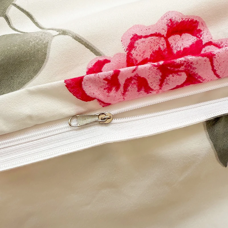 Cleaning: This down duvet cover should be machine washed with cold water. Low temperature drying, quick removal to prevent wrinkling. Ensure that the duvet cover is securely closed before washing.